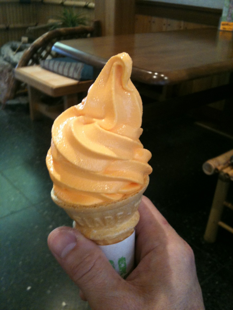 商店街でイヨカンのソフトクリームを頂きましたが、美味しかったですよ~!